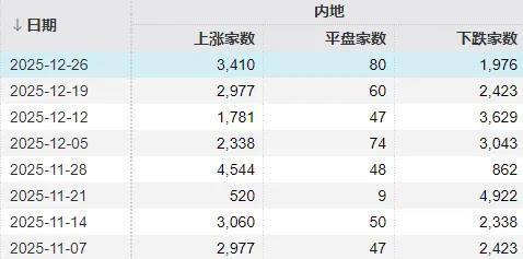 Wind数据显示,本周有3410家股票累计上涨,为12月以来最好一周。
