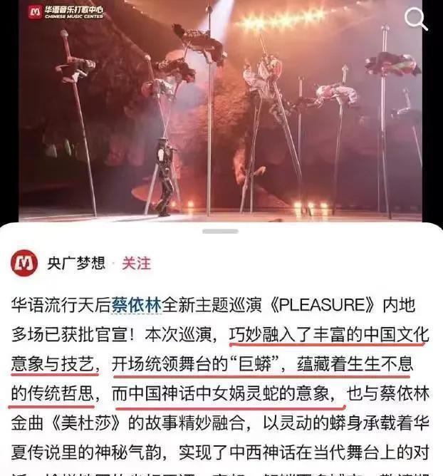 到了1月12号,事情突然变大,有人举报她的演唱会,说舞台上那条30米长的机械巨蟒是西方邪教仪式的一部分。