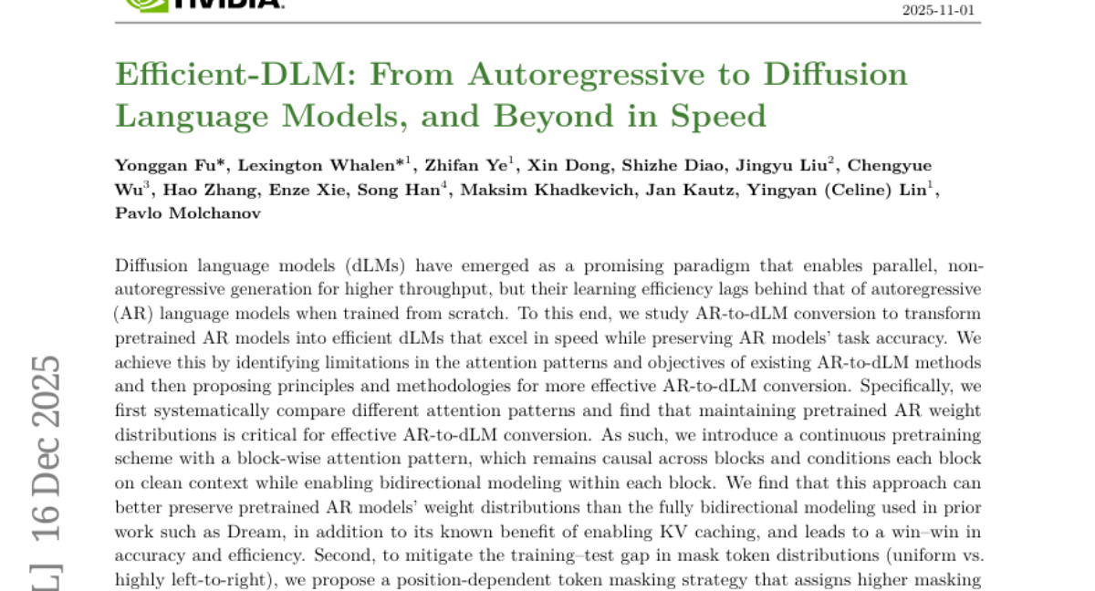 当我们使用ChatGPT或其他AI助手时,常常需要等待它一个字一个字地"思考"和输出答案。这就像一个非常博学但说话极慢的教授,虽然知识渊博,但回答问题时总是字斟句酌,让人等得心焦。传统的自回归语言模型就是这样工作的——它们必须严格按照从左到右的顺序生成每一个词,前一个词没有确定,后面的词就无法开始生成。
